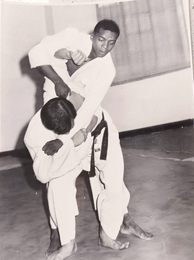 The matches took place at the dojo of Sebastian Hawkins, then chair of Karate South Africa, who had employed the German immigrants to teach at his school. “A big crowd came along”, Lai Thom remembered. Jack Robinson’s son Norman was much heavier than his German opponent, Werner Zeltinger, and had a higher degree black belt ranking. Despite this, the match was close. In the early exchanges, the German fighter threw his bigger opponent to the ground, but the throw scored no points, as Robinson had fallen out of bounds. Though Norman Robinson eventually won out, Lai Thom was astounded at how well the smaller and lower ranked man had performed.