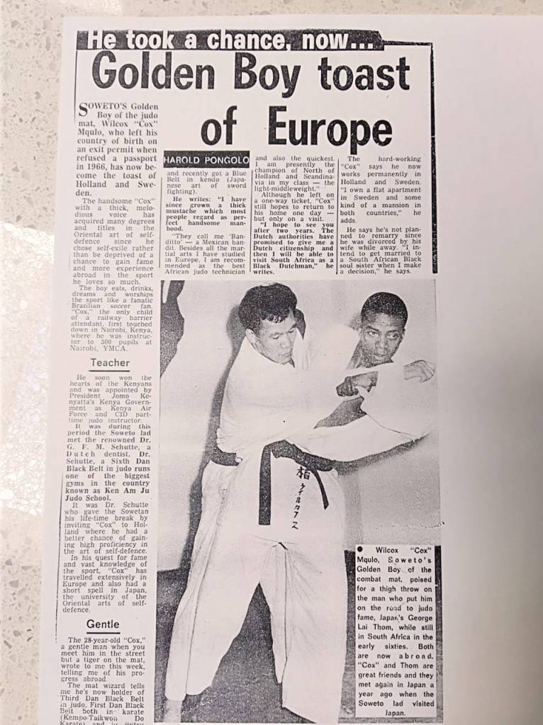 Less than a year after suffering the indignity of watching a judo competition through a window – one in which he no doubt would have bested many of the competitors had he been given the chance – Wilcox Mqulo left South Africa on an exit permit to Kenya. From there he fled to Holland, taking up an instructing post at a well-known judo school.