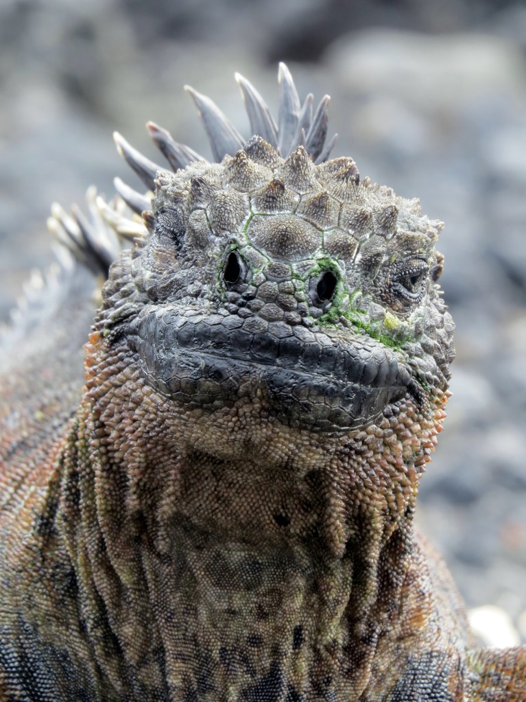 Salty – a marine iguana (Amblyrhynchus cristatus) suns himself on Isobela Island, Galápagos, Ecuador to warm up after a swim in the cold Humboldt Current. Marine iguanas are the only lizards to forage in the sea. They can dive for an hour or more, scraping algae off the rocks with their flat, scaly lips. November 2013.